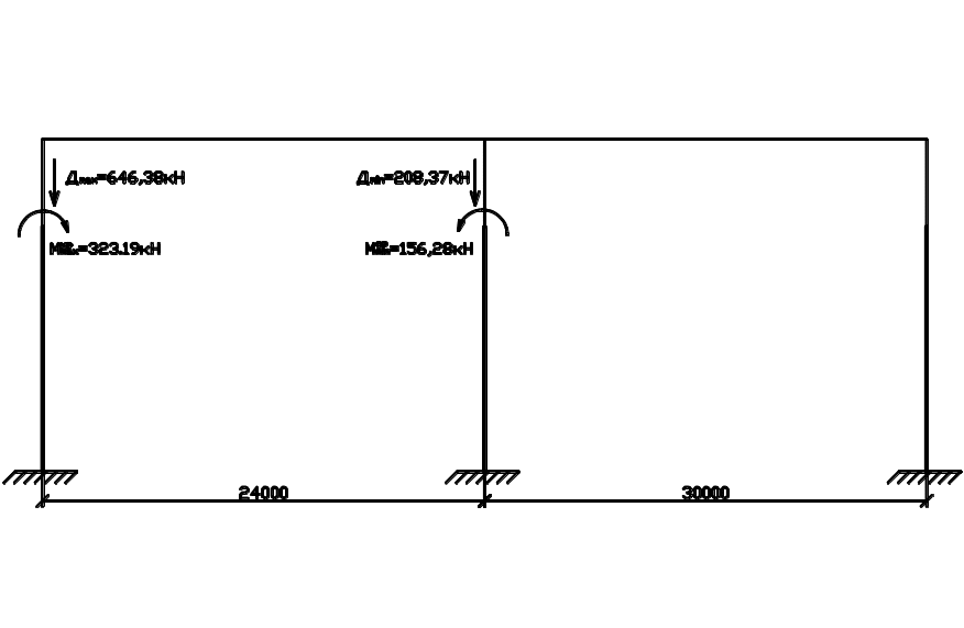 Предварительно определяем усилие в нижней части крайней колонны:
