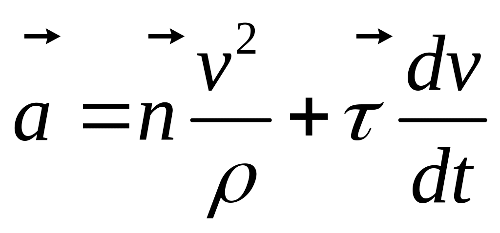 Отже, маємо пам'ятати, що при натуральному способі визначення руху прискорення точки дорівнює векторній сумі тангенціального і нормального прискорень.