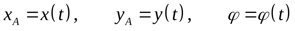 Однак плоска фігура може ще й обертатись у своїй площині. Для визначення обертального руху необхідно мати закон зміни кута повороту з часом. Цей кут домовимось вимірювати між віссю абсцис Ох і довільною прямою АВ: .