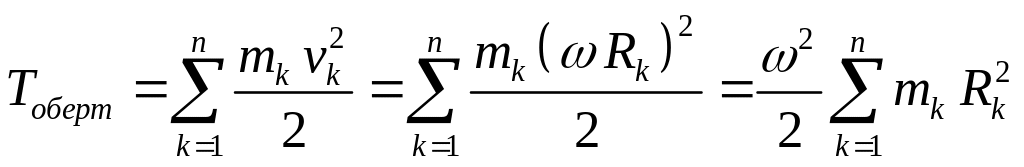 Отже, при обертанні тіла навколо осі кінетична енергія дорівнює половині добутку момента інерції тіла відносно даної осі на квадрат кутової швидкості.