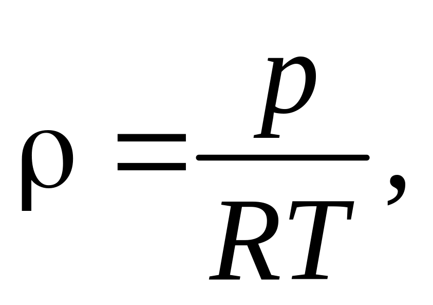 где р – абсолютное давление; R – удельная газовая постоянная (для воздуха R= 283 Дж/кг·К); Т – абсолютная температура.