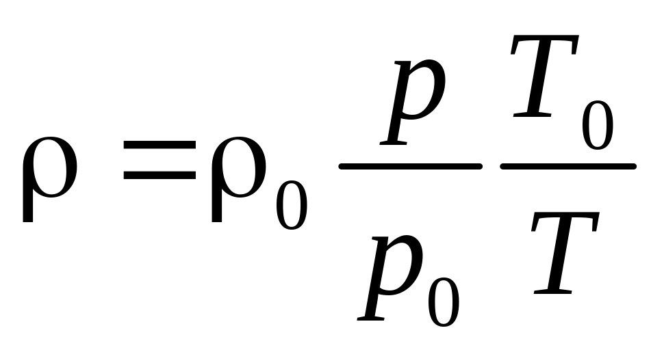 где ρ0, Т0 и р0 – плотность, температура и давление при известных стандартных условиях соответственно.