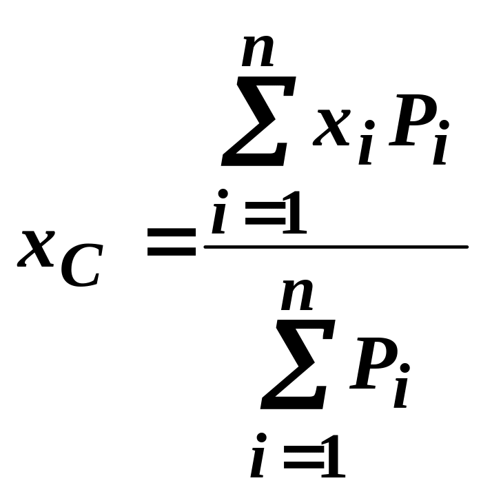 Координати центра паралельних сил у прямокутній системі декартових координат з початком у точці :