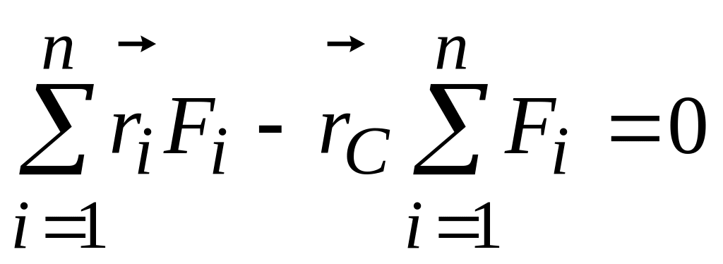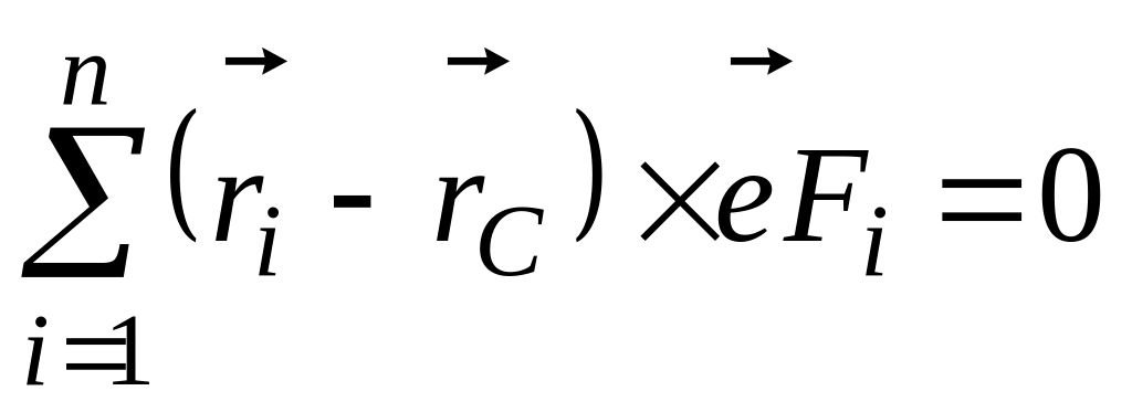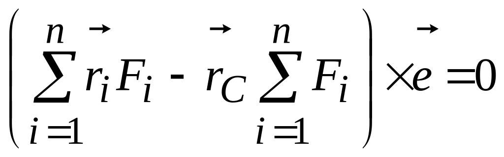Необхідна і достатня умова рівності нулеві векторного добутку (1.54) при будь-якому напрямі вектора (положення точки зберігається при повороті всіх сил разом на однаковий довільний кут) полягає у рівності нулеві виразу у круглих дужках (1.54):