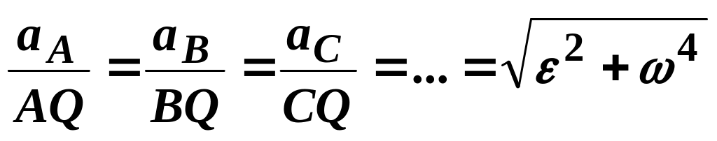 Отже, побудова миттєвого центра прискорень дозволяє повністю вирішити питання про розподіл прискорень точок при плоскопаралельному русі твердого тіла.