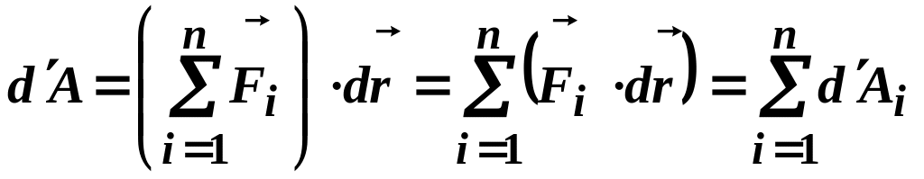 Елементарна робота, яка виконана рівнодійною сил, дорівнює алгебраїчній сумі елементарних робіт складових сил, прикладених до точки.