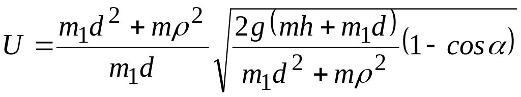 Припустимо, що перший етап удару починається з моменту дотику снаряда, що рухався з швидкістю , і нерухомого маятника. Другий етап удару закінчується тоді, коли маятник разом зі снарядом, що знаходиться в точці , дістане певну кутову швидкість .