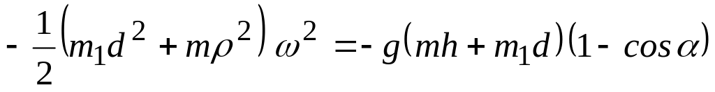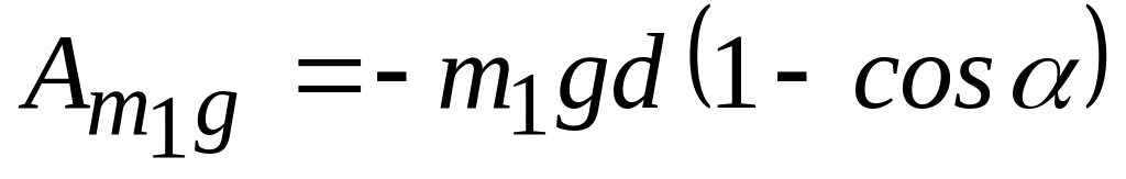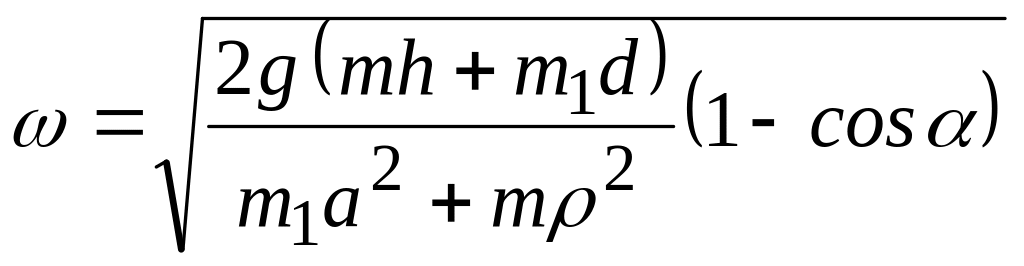 Для визначення розглянемо обертальний рух маятника разом зі снарядом навколо осі до моменту, коли він повернувся на кут і зупинився. Застосуємо теорему про зміну кінетичної енергії системи: