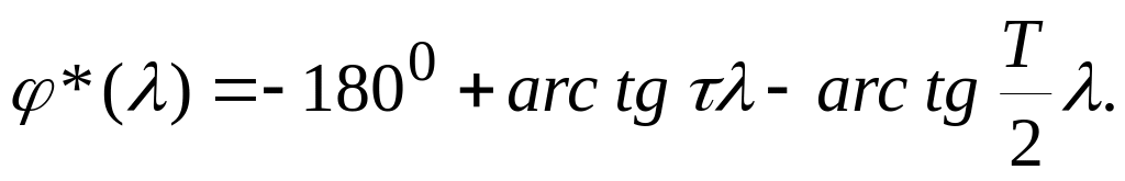а фазовая псевдочастотная характеристика определяется из (2.5.27) последовательно соединенными интегрирующим звеном второго порядка с W(jλ)=k/(jλ)2, форсирующим (ускоряющим) звеном с W(jλ)=(1+jτλ) и инерционным (замедляющим) звеном с W(jλ)=(1–jTλ/2) (рис. 2.5.2):