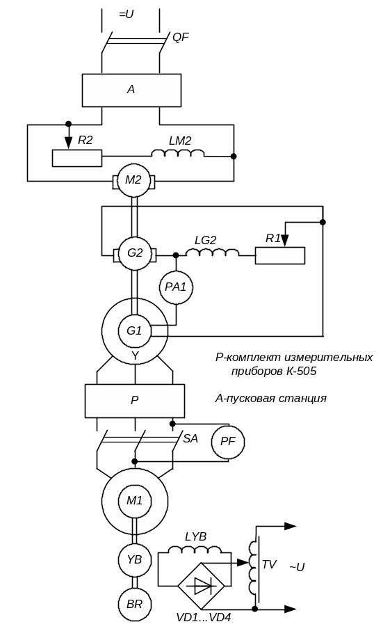 перед пуском асинхронного двигателя установить регулятор автотрансформатора TV в нулевое положение;