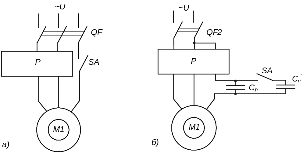 Рис. 3.2. Схема подключается асинхронного двигателя в однофазную сеть