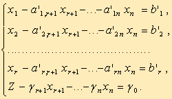 т.е. осуществляется выбор первого главного элемента. Переставляя уравнения так, чтобы в первом уравнении коэффициент a11 был максимальным по модулю. Разделив первую строку на главный элемент, как и прежде, исключают x1 из остальных уравнений. Затем для оставшихся столбцов и строк выбирают второй главный элемент и т.д.
