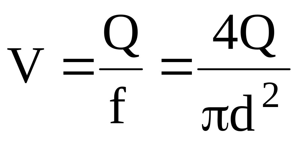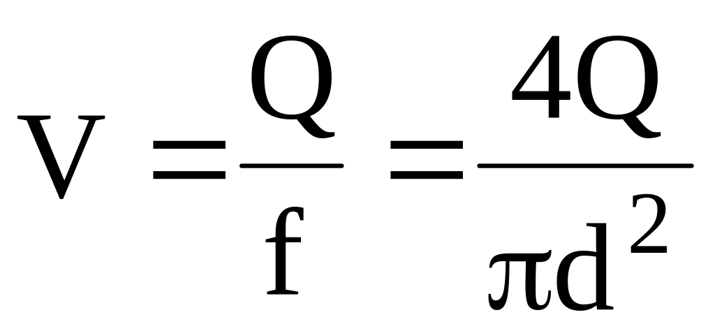 где V - скорость жидкости в трубопроводе, м/с,