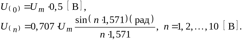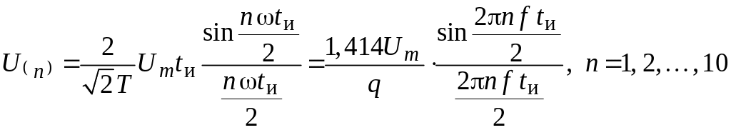 – рассчитать амплитудный спектр U1( f ) входного сигнала (до 10 гармоники включительно) по формулам: