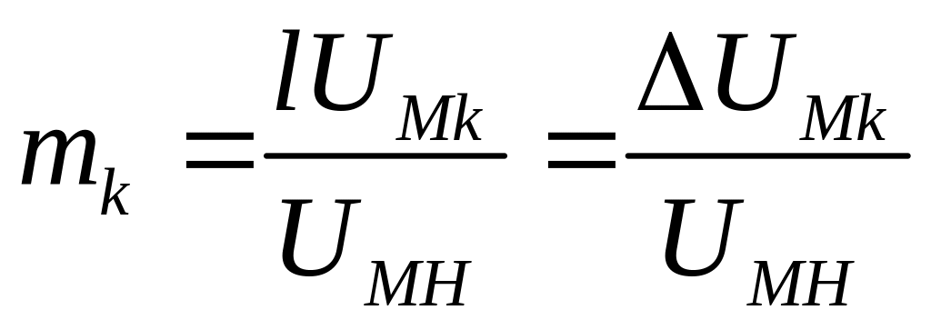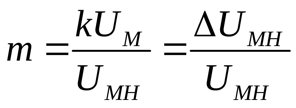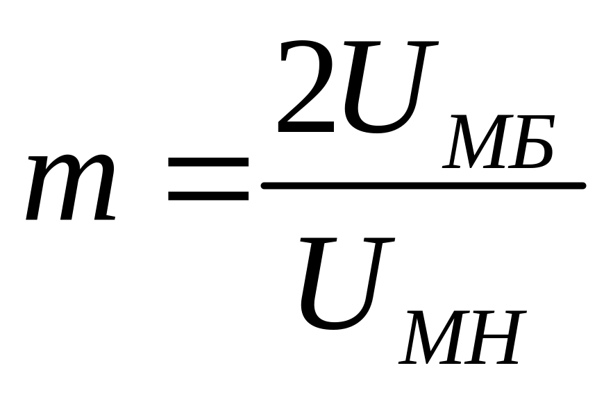 Глубина модуляции – отношение максимального приращения амплитуды к амплитуде несущего колебания.
