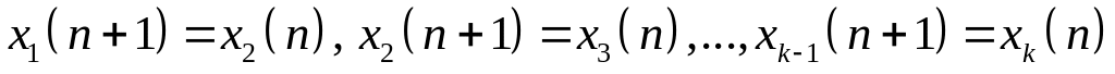 Заметим, что линейное разностное уравнение можно свести к системе линейных разностных уравнений. Действительно, пусть дано уравнение (1.4). Обозначим