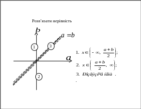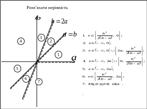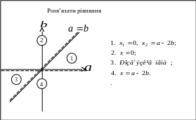 У даному розділі ми повернемося до дослідження проблеми створення компактних за об’ємом дидактичних матеріалів, які дозволяють мати у розпорядженні фактично довільну кількість вправ з окремих тем елементарної математики із відомими відповідями на кожну із них. Як уже відмічалося у вступі (приклад 5), при розв’язуванні рівнянь, нерівностей та їх систем із двома параметрами на координатній площині можна виділити області, у кожній із яких відповідь на задачу задається певними співвідношеннями – деякими функціями від параметрів. Їх можна зобразити на карточці із вказанням загальної відповіді для кожної із областей. Фіксуючи значення кожного із параметрів, ми отримуємо на координатній площині конкретну точку і у залежності від того, в яку область вона попадає, дістаємо відповідь. Для цього у загальні співвідношення, характерні для даної області, підставляємо вибрані значення параметрів. Якщо зафіксувати значення тільки одного із параметрів, то у нашому розпорядженні появиться серія відповідних задач із одним параметром та з готовими відповідями на них. Зауважимо, що процес підготовки конкретних задач за допомогою таких карточок є цілком керованим процесом. Якщо ми, наприклад, хочемо отримати умову для ірраціонального рівняння, у процесі розв’язування якого можуть появитися сторонні корені, достатньо вибрати точку у зоні (якщо така є на карточці) сторонніх коренів. У прикладі 5 вступу – це область 3.
