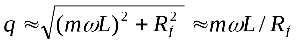 Сглаживающее действие фильтра на частоте mw в соответствии с ранее сказанным можно упрощенно трактовать как деление напряжения входной пульсации между большим (по переменному току) сопротивлением mwL дросселя и сопротивлением Rн нагрузки. Тогда коэффициент сглаживания такого фильтра примерно равен