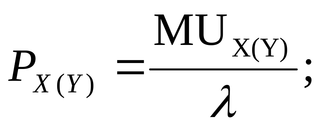 2. Для обчислення цін скористаємося другим законом Госсена, згідно з яким в умовах рівноваги споживача: