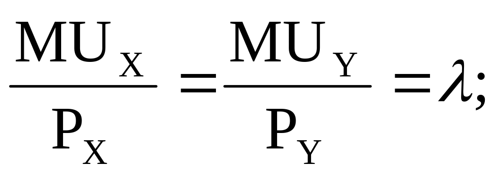 Правило оптимального вибору споживача за умов обмеженого бюджету передбачає рівність зважених за цінами граничних корисностей усіх куплених у межах заданого бюджету благ.
