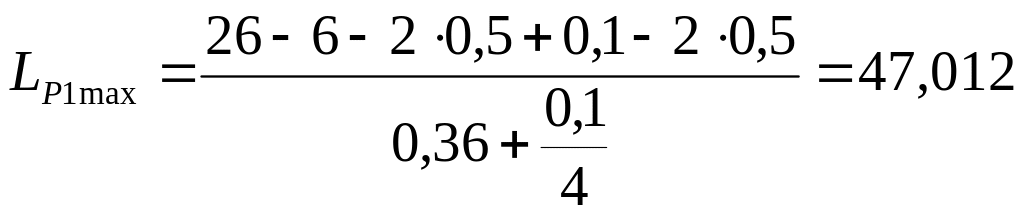Рассчитаем максимальный и минимальный участок регенерации по затуханию по формулам: