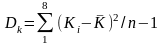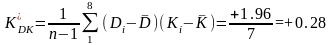 В графах 3 і 4 таблиці 4.5 обчислюють відхилення Di і Кі від середніх арифметичних і .