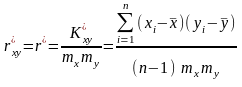 По формулі (4.47) обчислюємо кореляційний момент, а по формулі (4.48) коефіцієнт кореляції