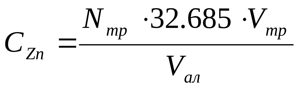 Концентрацию цинка в растворе определяют по формуле