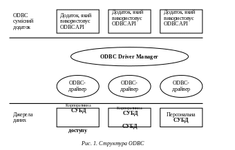 У концепції ODBC завжди використовується один ODBC Driver Manager і кілька ODBC-драйверів чи розподілюваних бібліотек для доступу до конкретних БД (рис. 1).