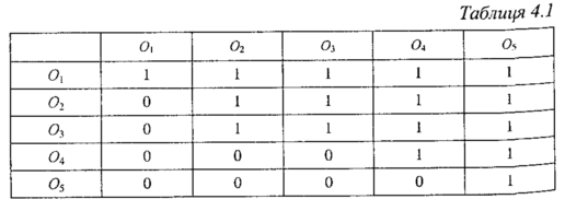 Тоді матриця попарних порівнянь для цього ранжування подається у вигляді табл. 4.1.