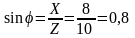 φ между векторами общего напряжения