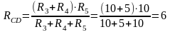 1.Определяем общее сопротивление разветвления CD, учитывая, что резисторы R3 и R4 соединены между собой последовательно, а с резистором R5- параллельно: