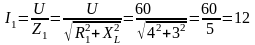 По закону Ома для цепи переменного тока находим ток в цепи:
