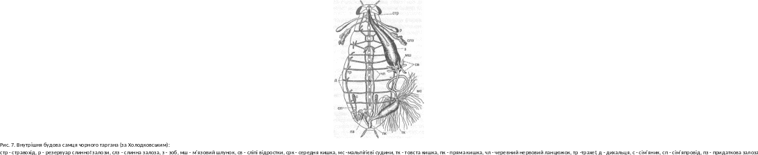 Травна система. Основну частину травної системи становить травний канал, або кишечник, який поділяється на три відділи: передню, середню та задню кишку. Передній відділ (передня кишка) починається ротовою порожниною, в яку впадають слинні залози, що виділяють карболітичні ферменти для хімічного перетравлювання їжі.