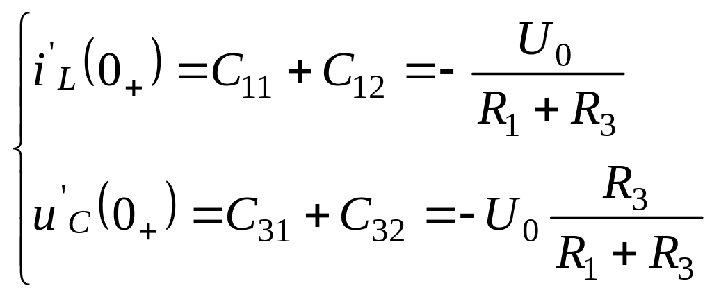де i'L(t), i'R(t),uC'(t) — відповідно, вільні складові струмів у вітках і напруги на ємнісному елементі кола;