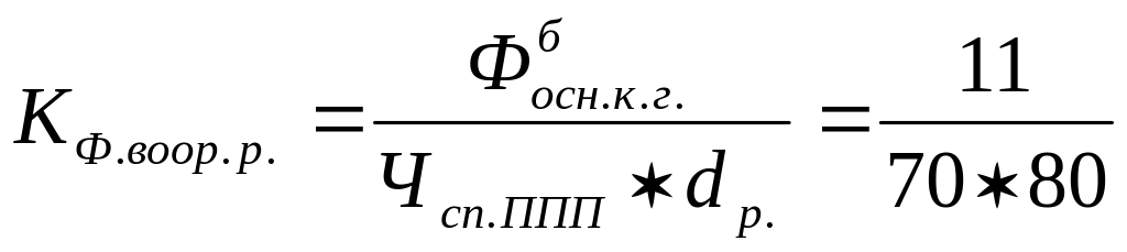 Кф отд = Qp / Фосн; Кф отд = Фосн / Qp; Кфв тр = Фосн / Ч сп ср рабоч ,