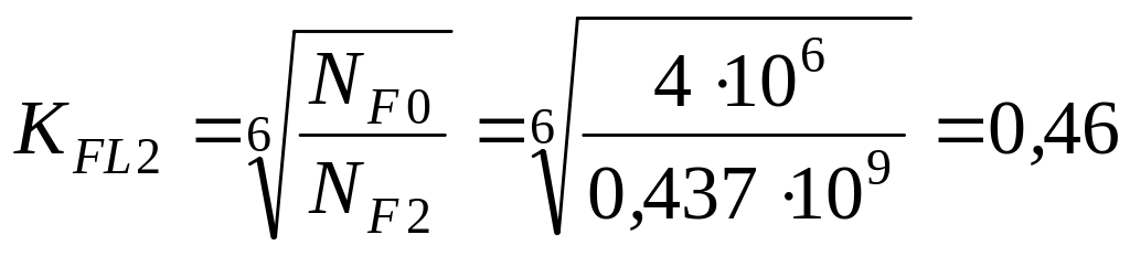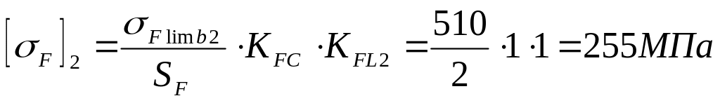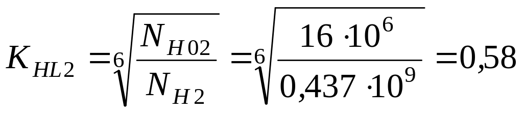 Так как КHL1 < 1 и KHL2 < 1, то принимаем КHL1 = 1 и KHL2 = 1 (для длительно работающих передач при NH > NH0 коэффициент долговечности КHL = 1).