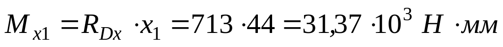 Горизонтальные составляющие реакций в опорах RDx и RCx определяются из уравнений моментов относительно опор C и D: