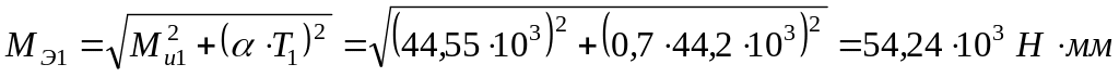 Опасным является сечение вала под шестерней, в котором действует максимальный эквивалентный момент Мэ1, а также есть концентратор напряжений – зубья. Диаметр вала в этом сечении равен