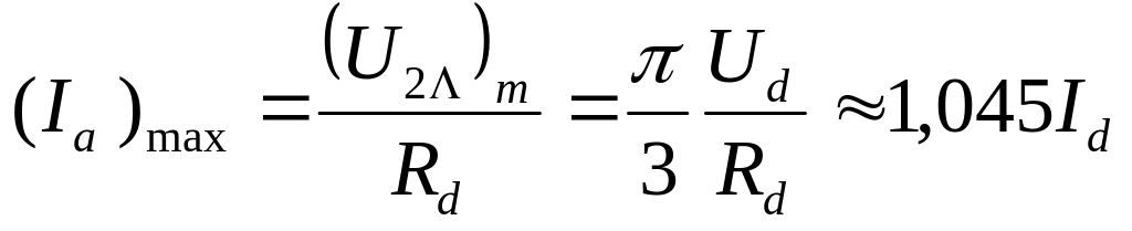 - максимальное значение обратного напряжения на вентиле равно амплитуде линейного напряжения вторичной обмотки источника: