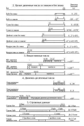 В заключение приведем все форматы данных (чисел и символов), которые используются в современных персональных компьютерах IBM PC и совместимых с ними.