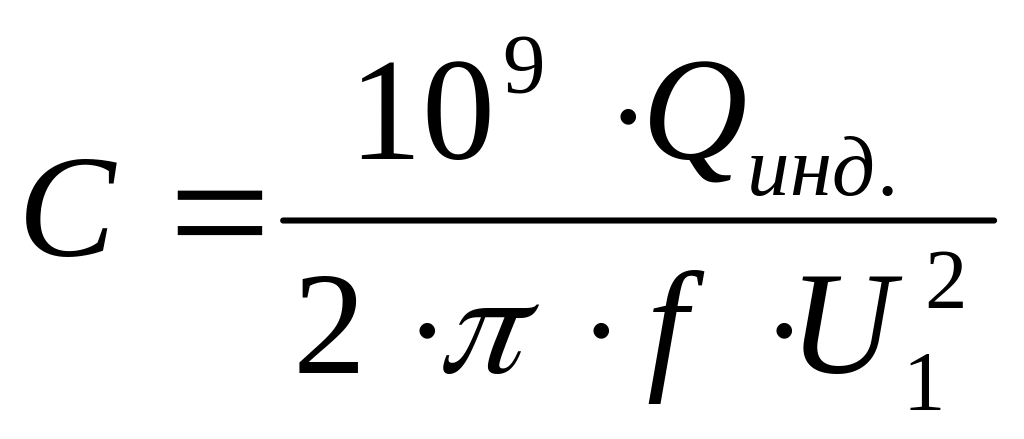 Емкость конденсаторной батареи индуктора (для компенсации cos φ):