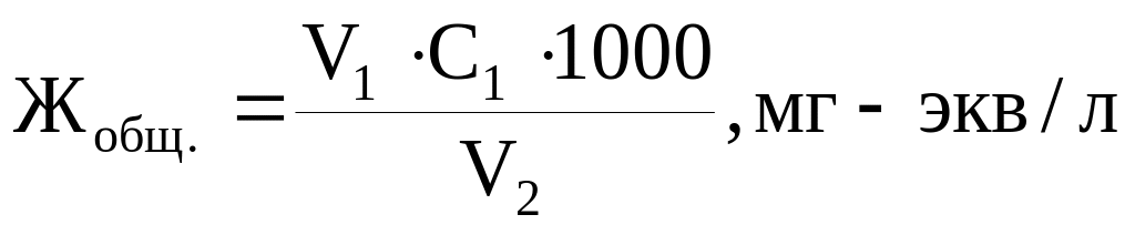 Общую жесткость воды определяют комплексометрическим методом, который основан на свойстве трилона Б связывать ионы кальция и магния в комплексные соединения, оптимальным условием образования которых является рН =8.. .10.