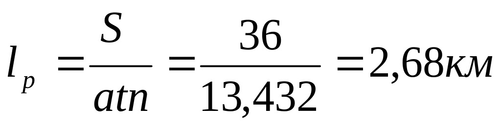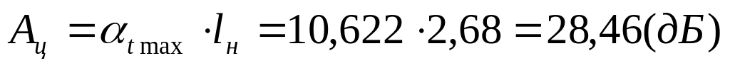 Знайдемо величину загасання на ділянці регенерації номінальної довжини по формулі: