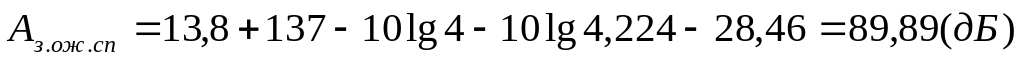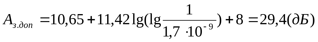 Розрахуємо очікувану захищеність сигналу від власної перешкоди на ділянці регенерації номінальної довжини: