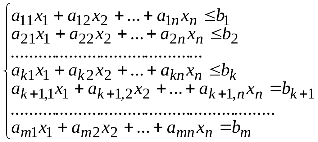 Система ограничений – система уравнений или неравенств, которым удовлетворяют переменные задачи и которые следуют из физического или экономического смысла задачи.