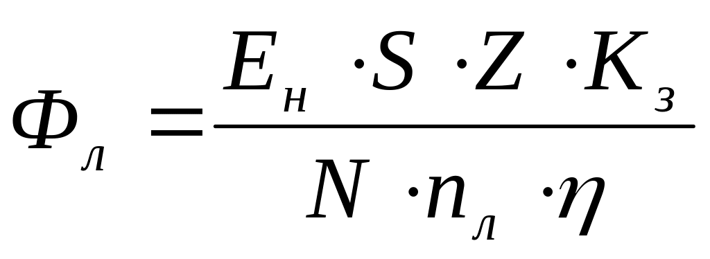 Расчет искусственного освещения для люминесцентных ламп производится по формуле: