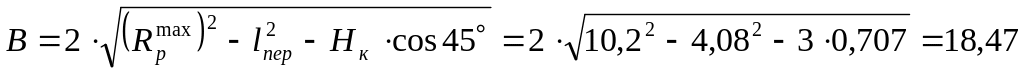 Найдем максимальную ширину торцевого прохода по верху котлована при движении экскаватора по прямой и односторонней подачи транспортных средств: