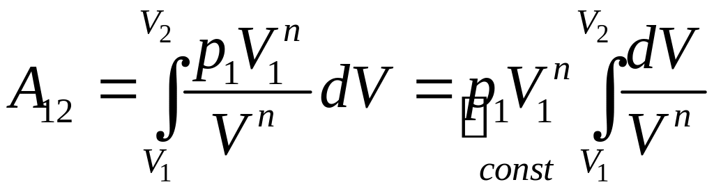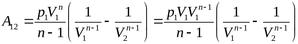 где p1,V1 – давление и объем газа в начальном состоянии, p2,V2 – давление и объем газа в конечном состоянии, p,V – давление и объем газа в промежуточном состоянии. Из (13) получим: