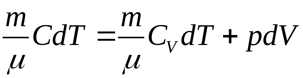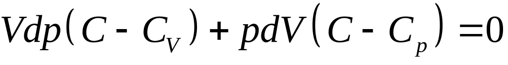где C – молярная теплоемкость при политропическом процессе. Исключим из (2) температуру. Для этого запишем уравнение Клапейрона-Менделеева и продифференцируем его: